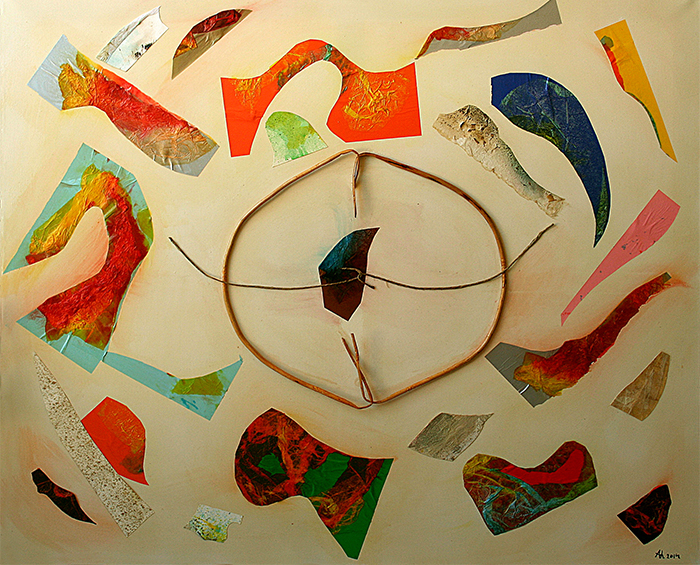 I miei collage sono opere visionarie, plastiche, pittoriche e poetiche, che tendono a raggiungere la perfetta armonia tra linea, colore, materia, forma e ispirazione.